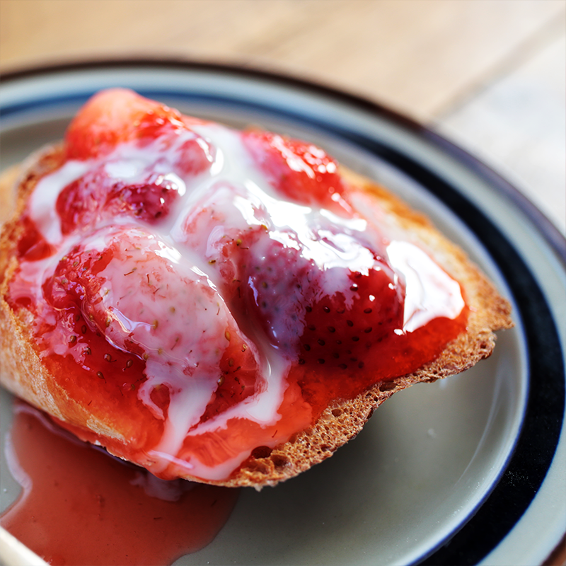 心地良い甘さと穏やかな酸味が特徴の少し大きめの苺です。風味も心地よく、満足いく美味しさです。